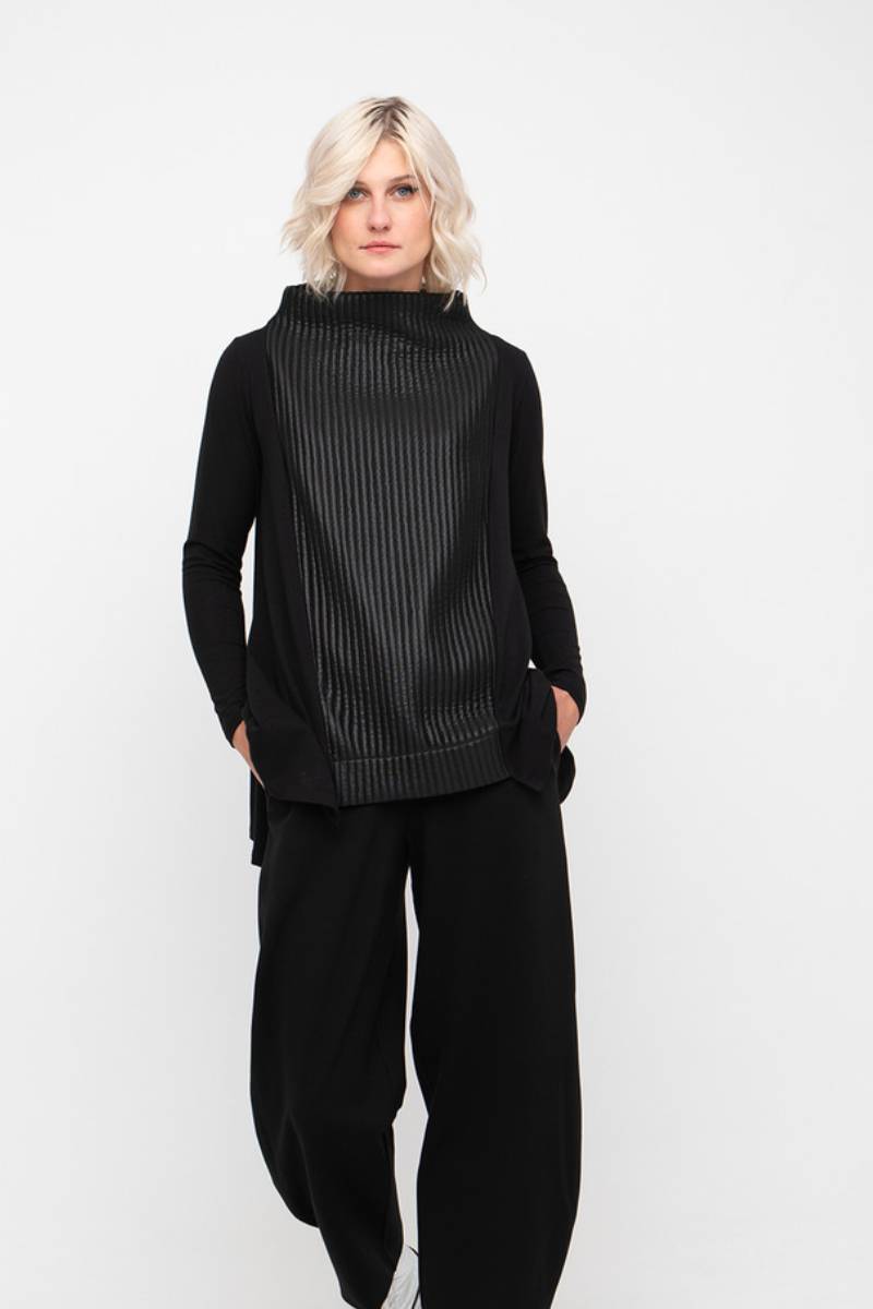 Ριχτό τοπ με γιακά χωνί, μακριά μανίκια με χαμηλωμένους ώμους και πλαϊνά ανοίγματα
