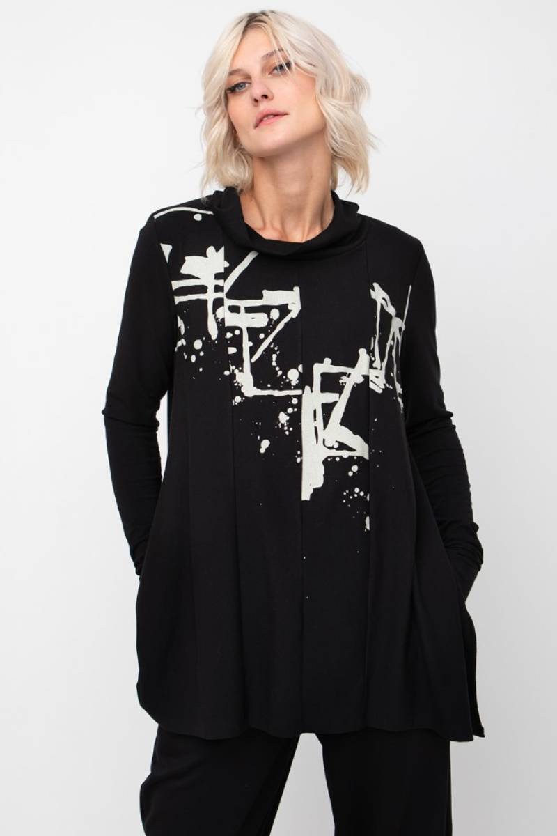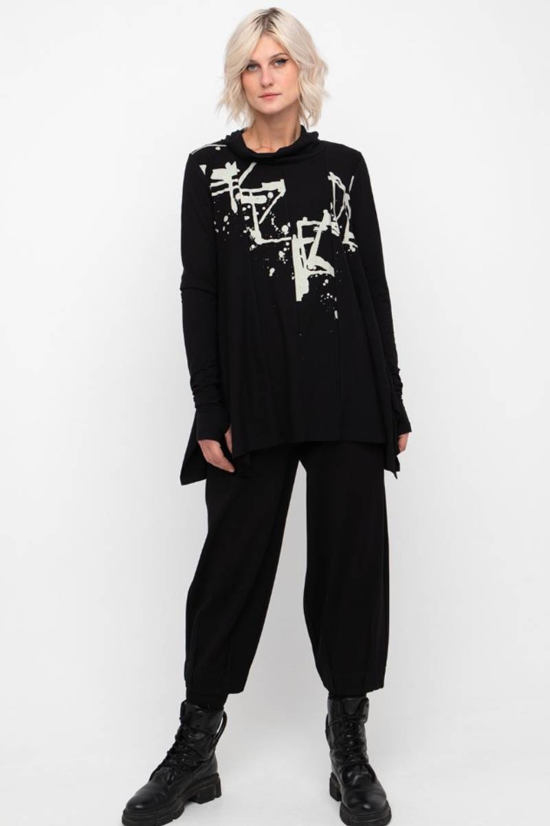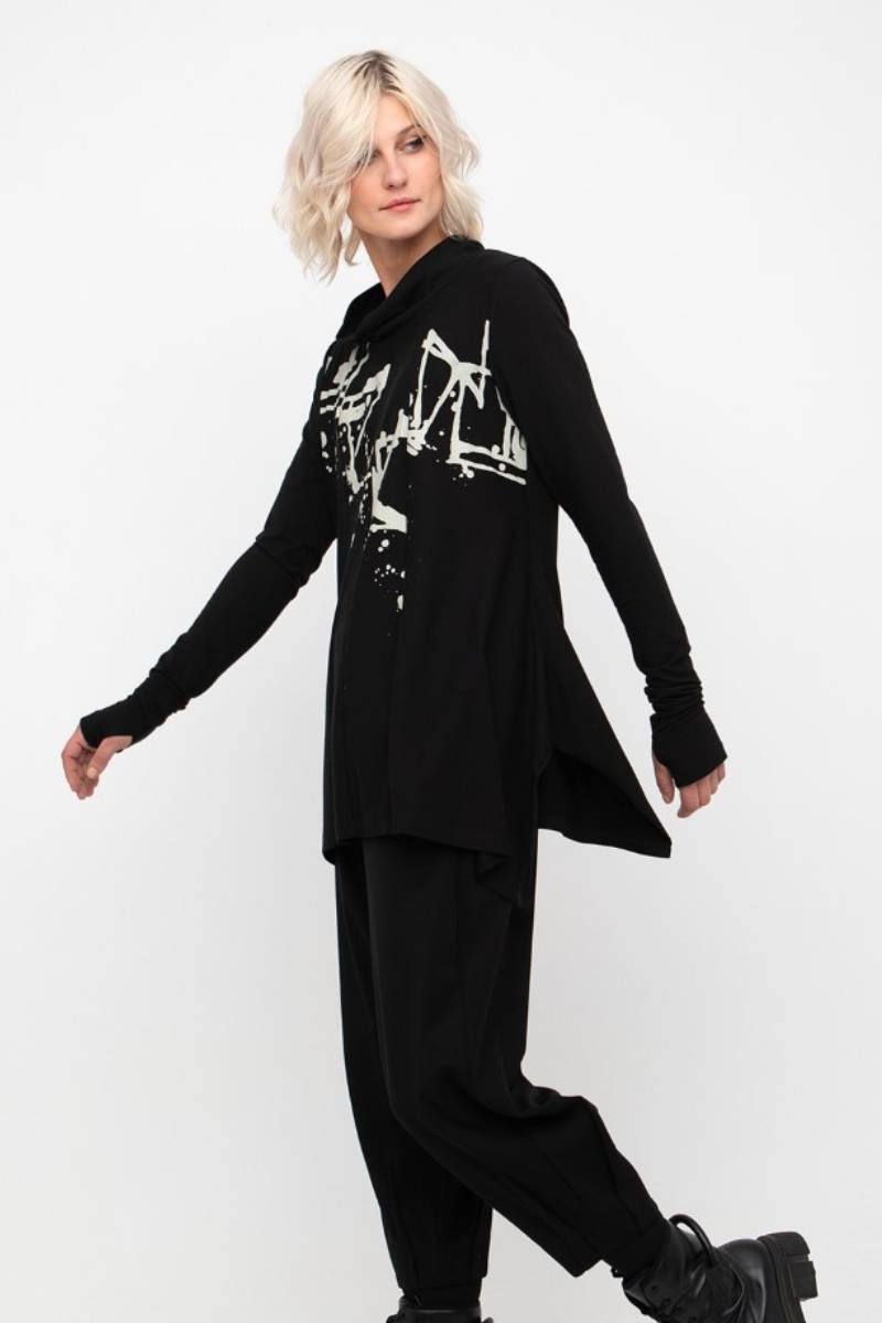 Τοπ από βαμβακερό ζέρσεϊ με ντραπέ λαιμόκοψη και στάμπα μπροστά