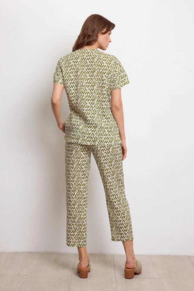 Εκτυπωμένη μπλούζα. Ίσια, χαλαρή εφαρμογή. Κοντά μανίκια με βολάν. Μαλακό, ελαφρύ ύφασμα. Σταυρωτή λαιμόκοψη V με τυπωμένη κορδέλα σε αντίθεση. Ίσιο στρίφωμα. Σχεδιασμένο και κατασκευασμένο στην Ισπανία. 100% βισκόζη