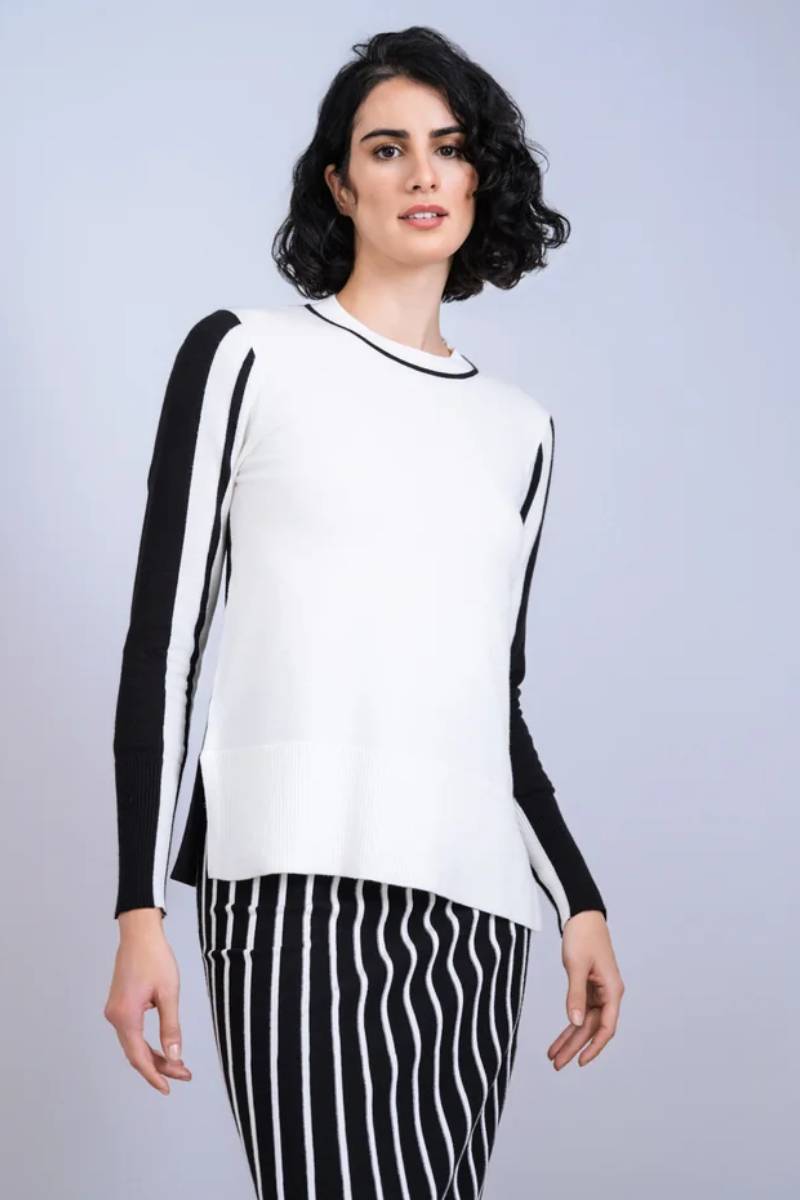 ΜΠΛΟΥΖΑ ΑΣΠΡΗ ΜΕ ΜΑΥΡΕΣ ΡΙΓΕΣ ΣΤΑ ΜΑΝΙΚΙΑ