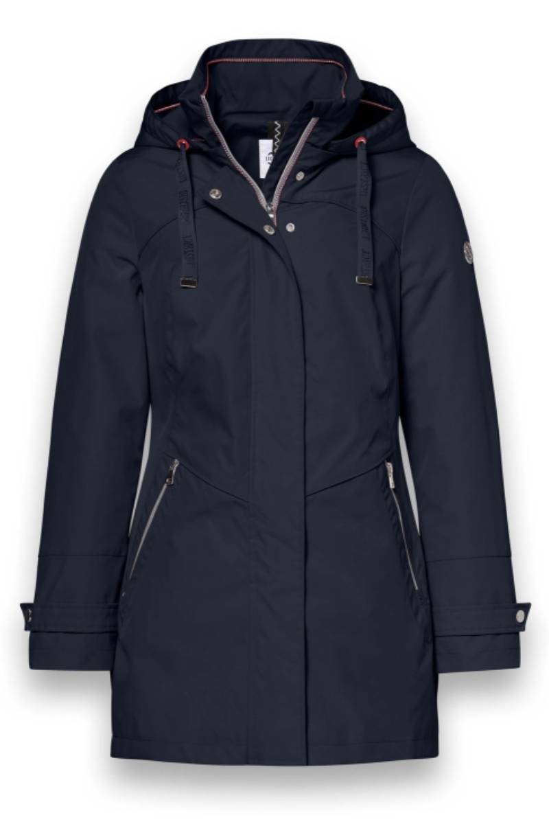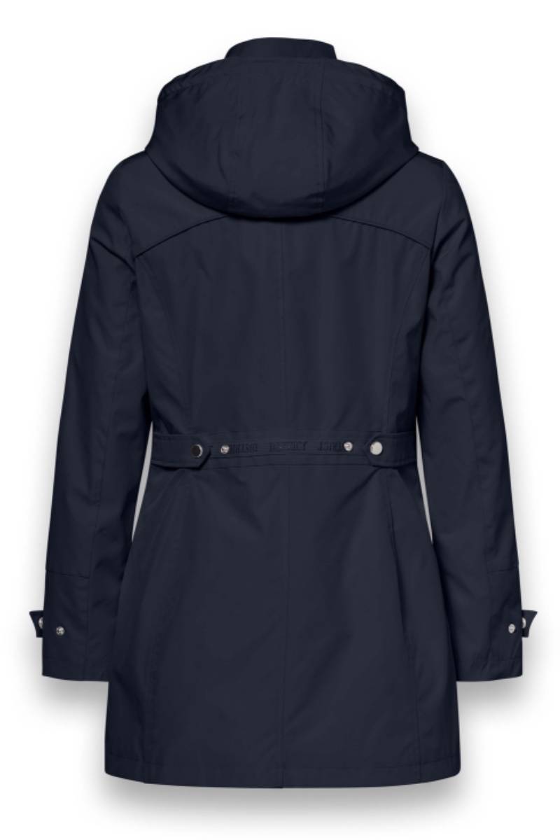 Αυτό το μοντέλο σε ίσια γραμμή διαθέτει όρθιο γιακά με αποσπώμενη κουκούλα και μακριά μανίκια. Αυτό το σκούρο μπλε μπουφάν από την District κουμπώνει μπροστά με κουμπιά και φερμουάρ και διαθέτει δύο τσέπες με φερμουάρ. Το μοντέλο ολοκληρώνεται με κορδόνι περίσφιξης στην κουκούλα και λεπτομέρειες με αγκράφα στο πίσω μέρος και στις μανσέτες.