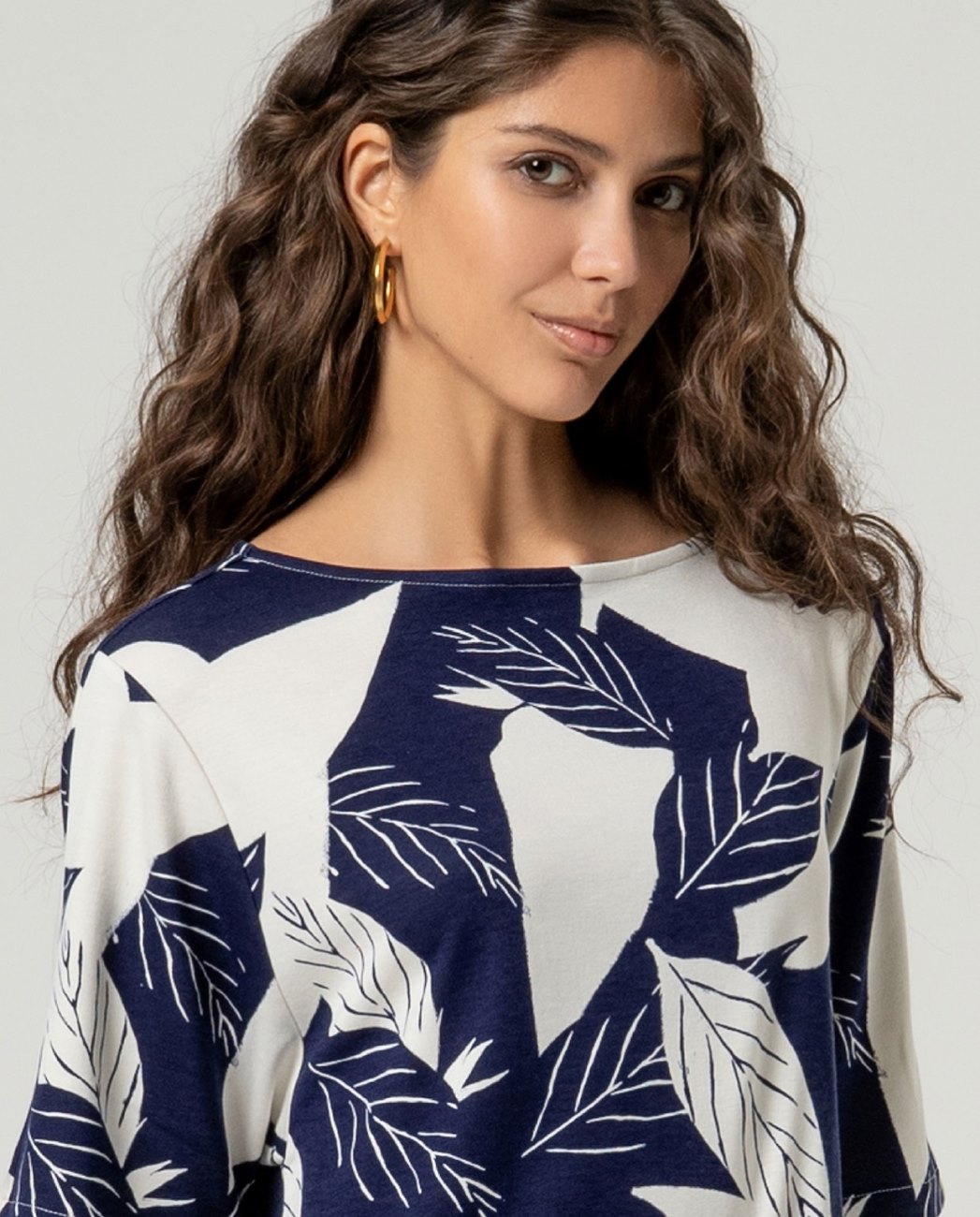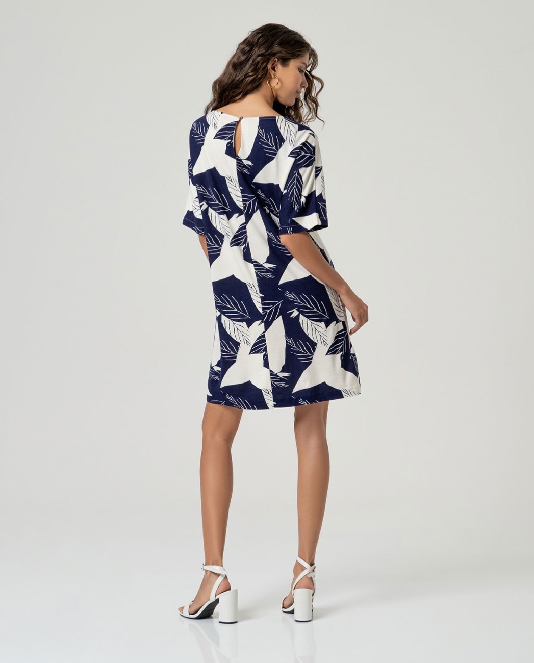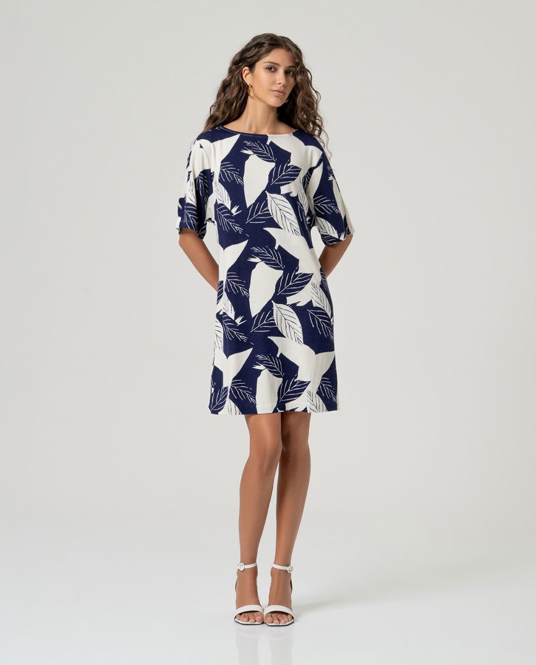 Περισσότερες πληροφορίες Κοντό φόρεμα με στάμπα, μανίκια μέχρι τον αγκώνα και στρογγυλή λαιμόκοψη. Διαθέτει ίσιο κόψιμο με φαρδιά σιλουέτα και πλαϊνές τσέπες. Μήκος πάνω από το γόνατο, ίσιο στρίφωμα και ελαστικό φινίρισμα. Σχεδιασμένο στη Βαρκελώνη. Κοντό φόρεμα με στάμπα και τσέπες