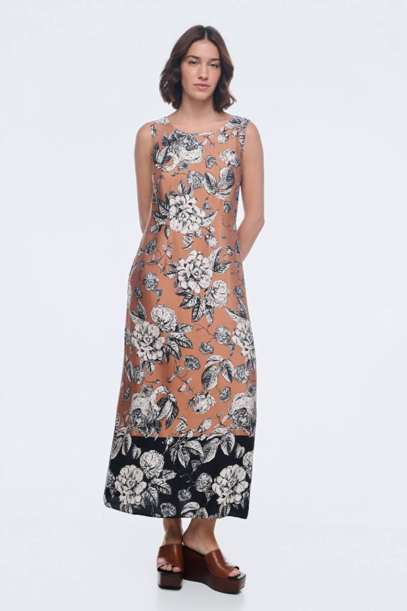 Φόρεμα φλοράλ δίχρωμο απο βισκόζη
