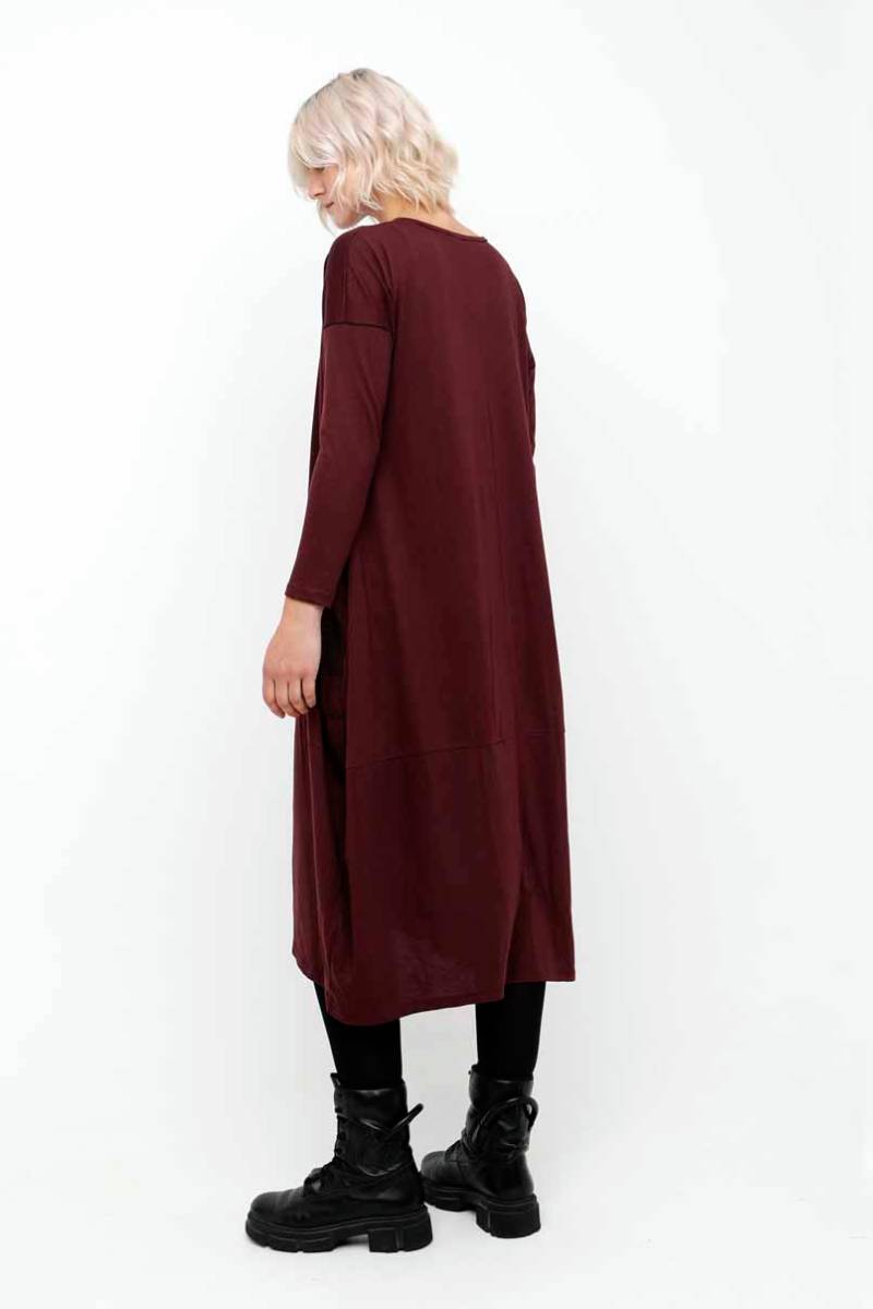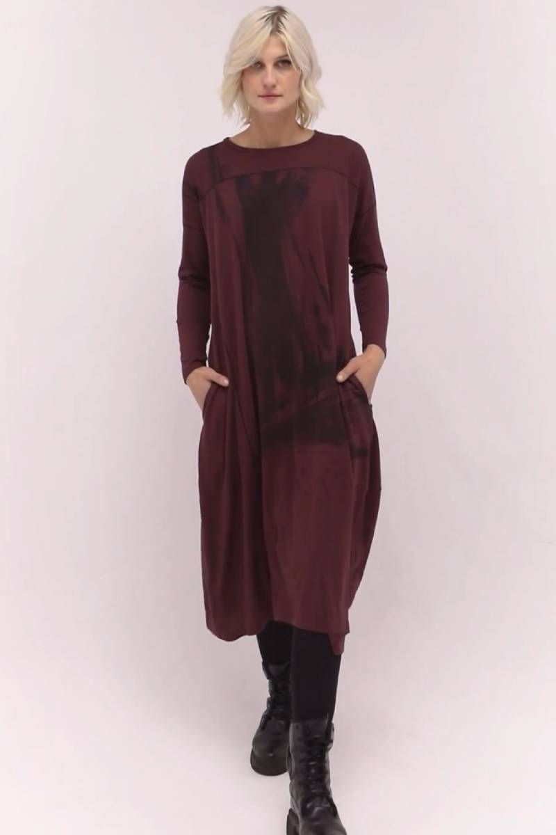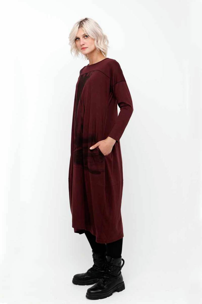 Φόρεμα μίντι από ζέρσεϊ, με στρογγυλή λαιμόκοψη, κρυφές πλαϊνές τσέπες και στάμπα μπροστά