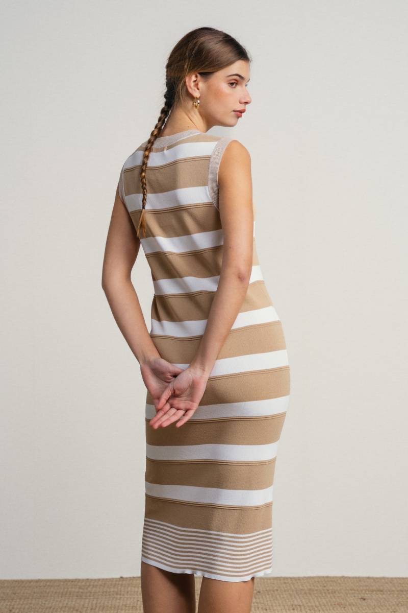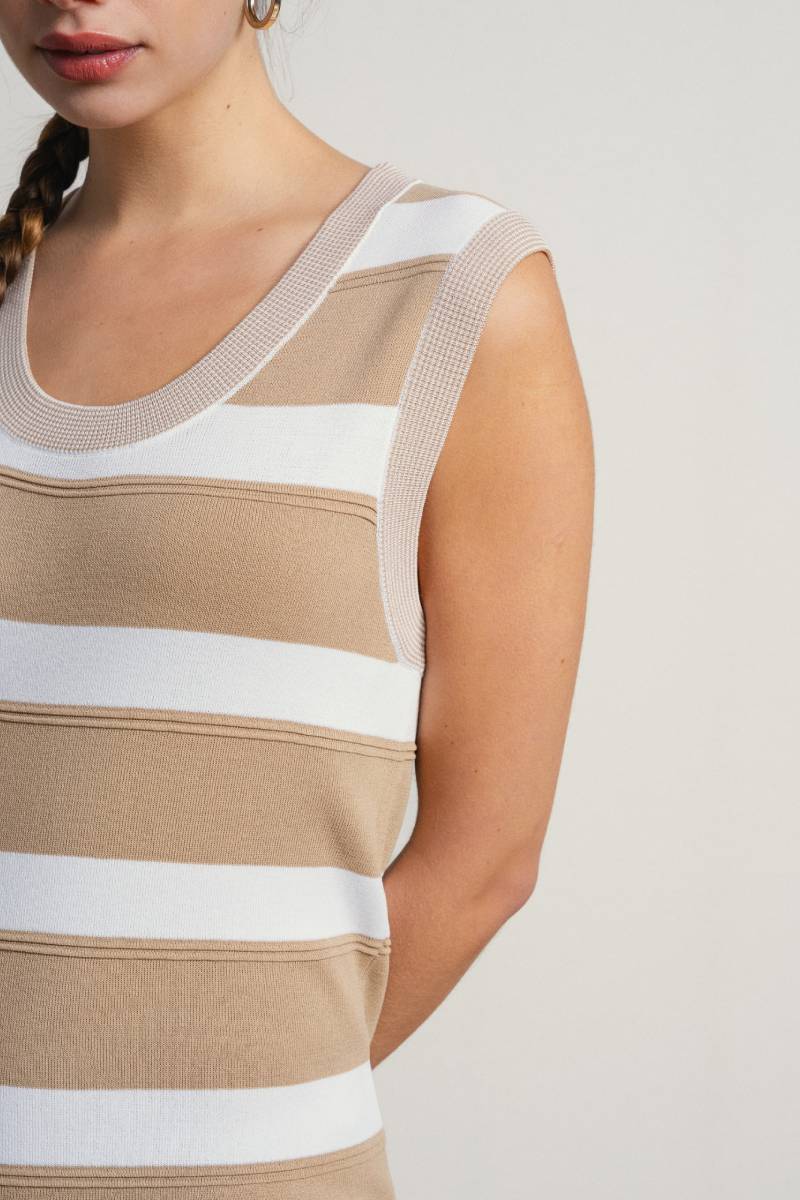 Μακρύ, ασύμμετρο ριγέ αμάνικο φόρεμα 65% Viscose 35% Nylon