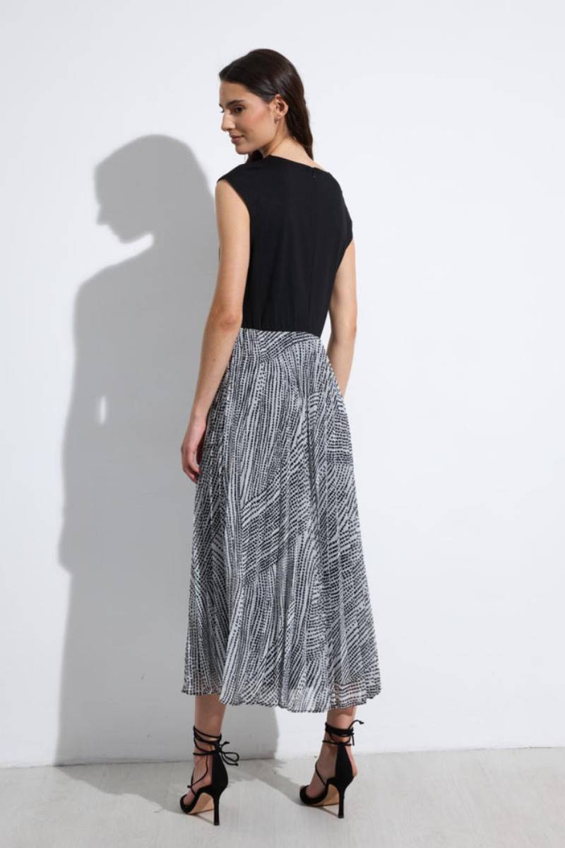 Μίντι φόρεμα με αμάνικο σχέδιο. Στρογγυλή λαιμόκοψη. Μονόχρωμο μπούστο σε αντίθεση με τυπωμένη φούστα. Εφαρμοστό τελείωμα. Πλισέ στρίφωμα. Σχεδιασμένο και κατασκευασμένο στην Ισπανία.