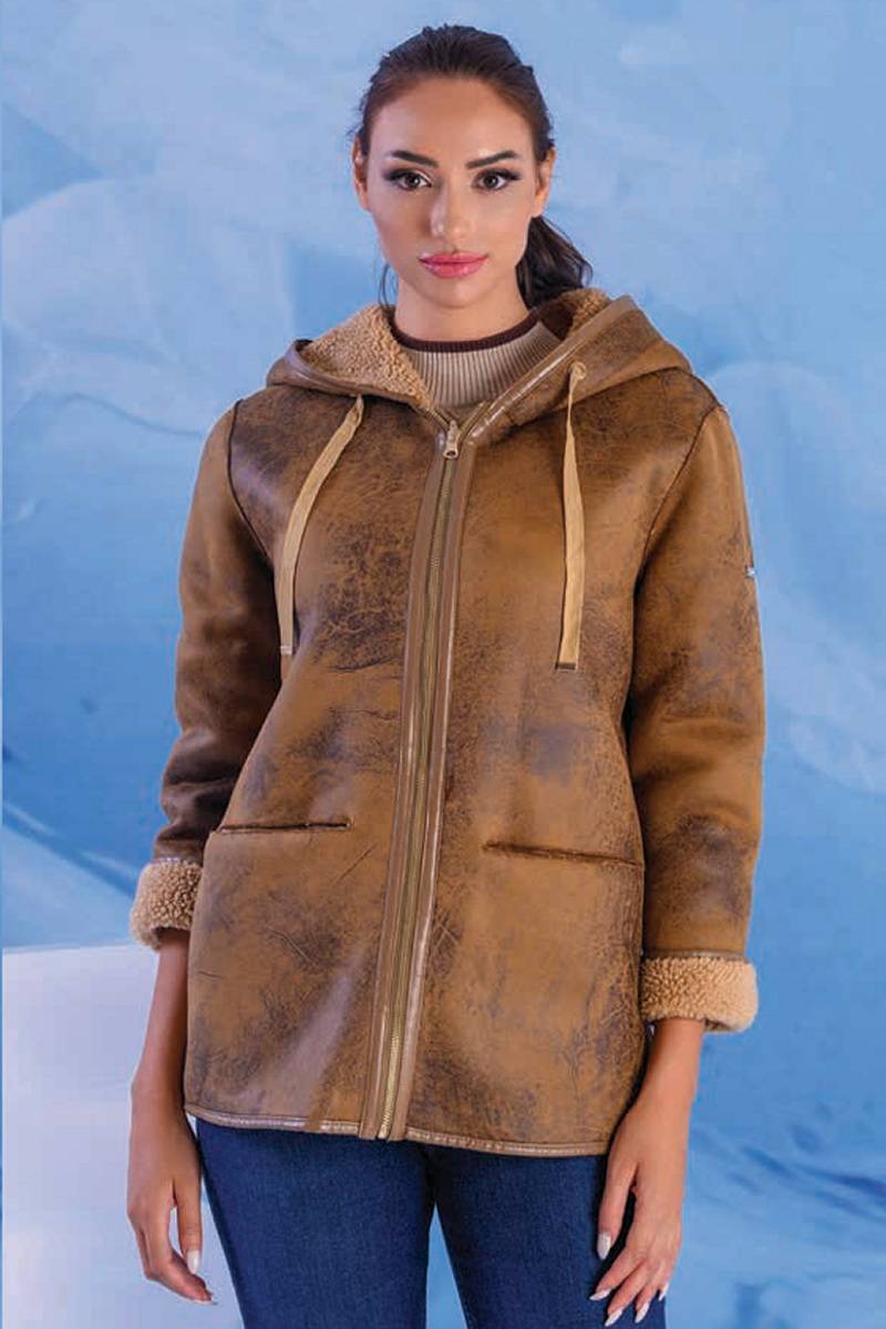 ΤΖΑΚΕΤ ΔΙΠΛΗΣ ΟΨΗΣ ΕΚΡΟΥ-ΜΠΕΖ ΜΕ ΚΟΥΚΟΥΛΑ