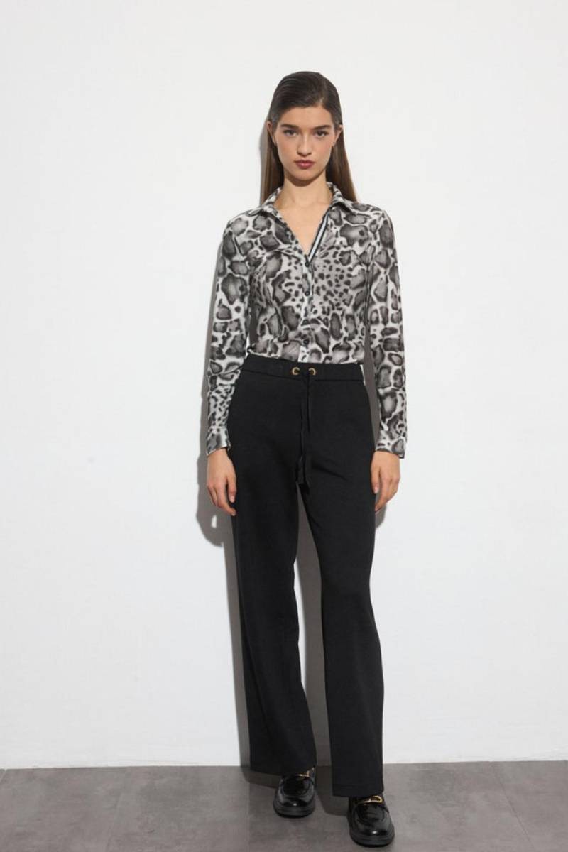 Παντελόνι με ίσια γραμμή, άνετο και άνετο. Ψηλόμεσο. Μέση χωρίς ζώνη με ρυθμιζόμενο κλείσιμο με κορδόνι.