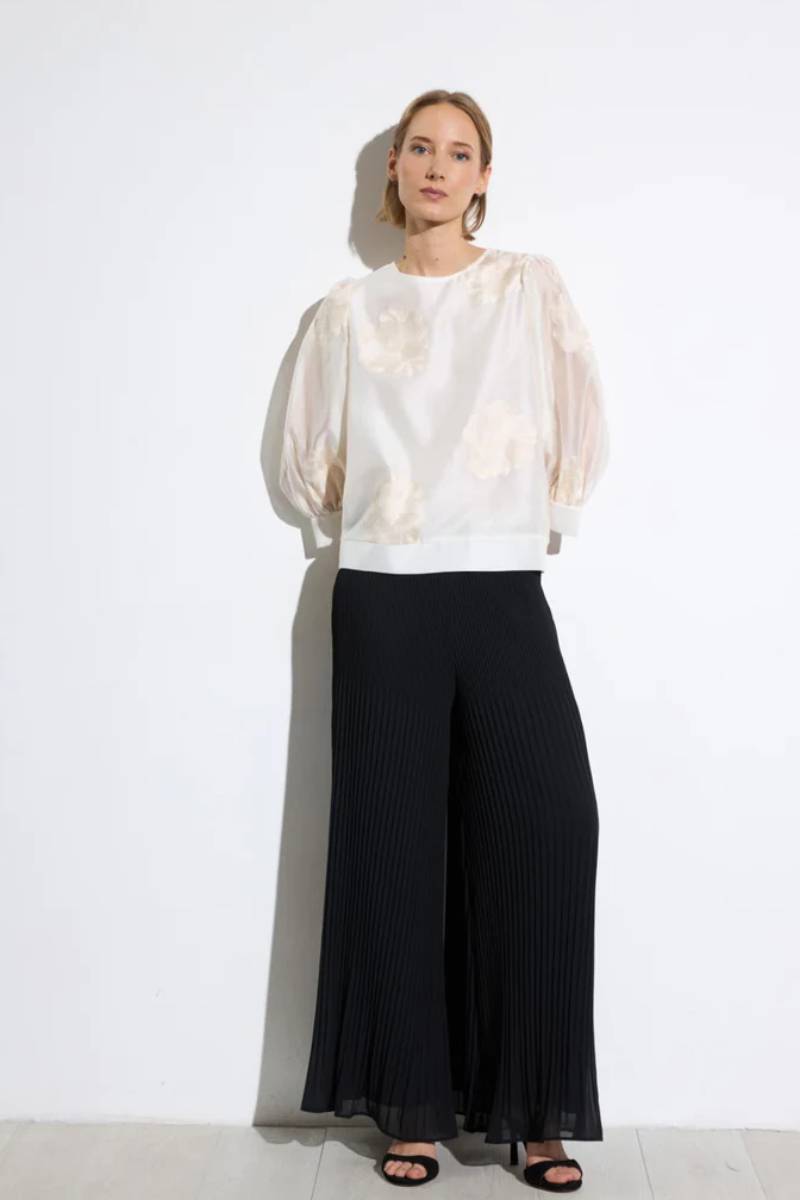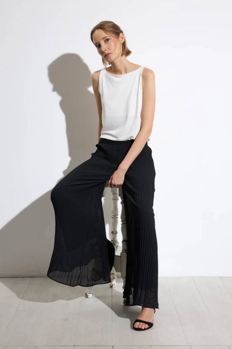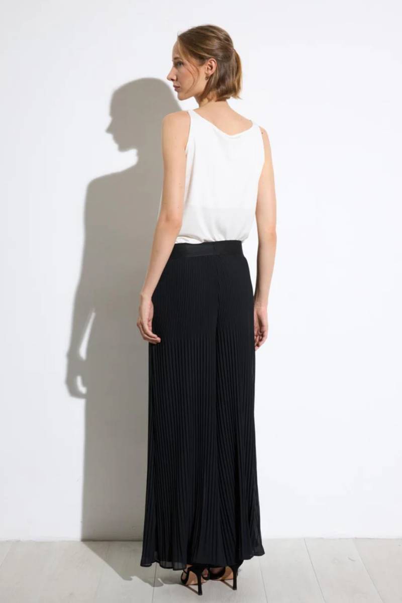 Μονόχρωμο παντελόνι με πτυχώσεις. Φαρδιά ελαστική ζώνη. Φαρδύ στρίφωμα στο κάτω μέρος. Σχεδιασμένο και κατασκευασμένο στην Ισπανία. 100% πολυεστέρας
