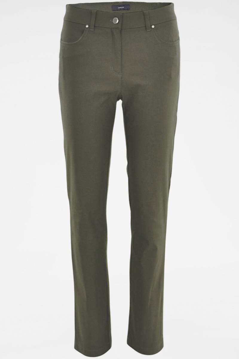 – Παντελόνι σε κλασική γραμμή, σε λαδί-πράσινο, με ίσια γραμμή – Σχεδιασμός με πέντε τσέπες – Κλείσιμο με στιβαρό φερμουάρ και κουμπί – Θηλιές ζώνης για ζώνη και μια εξατομικευμένη εμφάνιση – Υψηλής ποιότητας, ανθεκτικό ύφασμα με ελαστικότητα (76% βισκόζη, 21% πολυεστέρας, 3% ελαστάνη) – Άνετη εφαρμογή για βέλτιστη άνεση και ελευθερία κινήσεων – Εύκολη φροντίδα: Πλύσιμο στο πλυντήριο στους 30°C, χωρίς χλωρίνη, σιδέρωμα με μέτρια θερμότητα, χωρίς στέγνωμα στο στεγνωτήριο – Ευέλικτο για επαγγελματικές δραστηριότητες, αναψυχή και για μια κομψή καθημερινή εμφάνιση