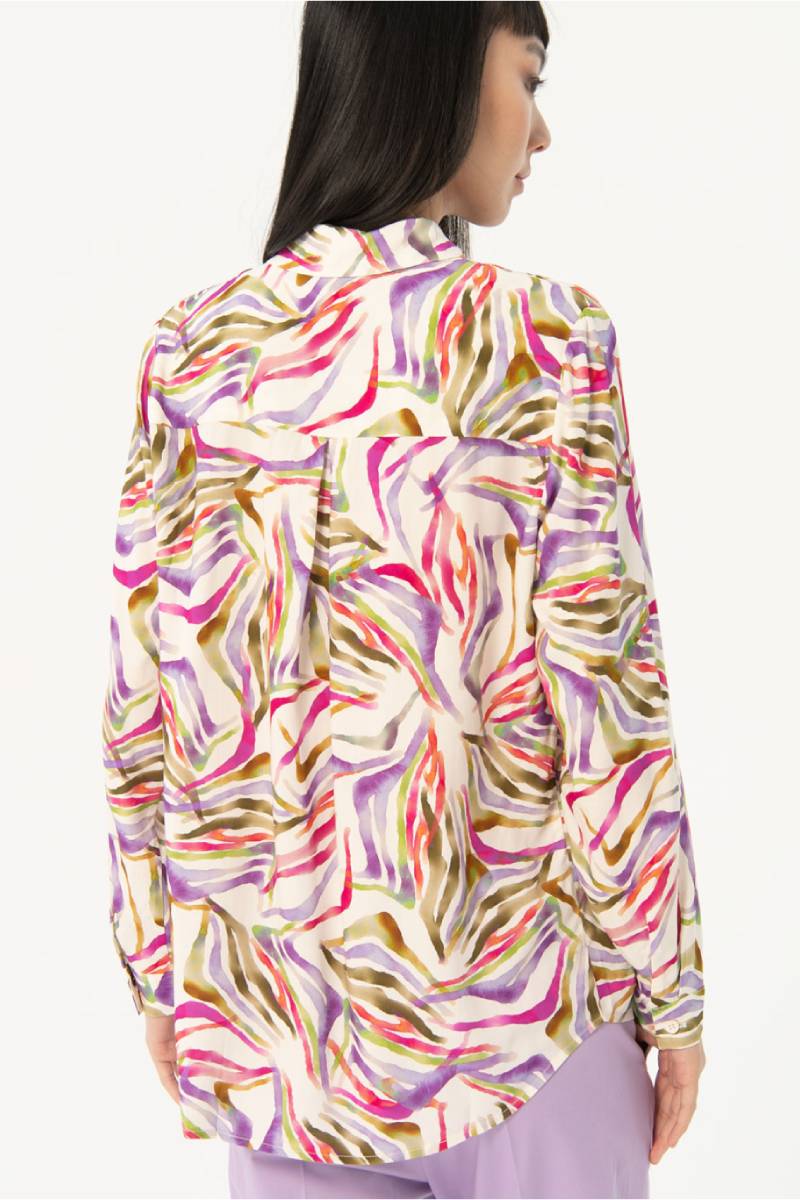 Πουκάμισο από βισκόζη με στάμπα και μακριά μανίκια. Πολύ ρευστό και ντραπέ ύφασμα.