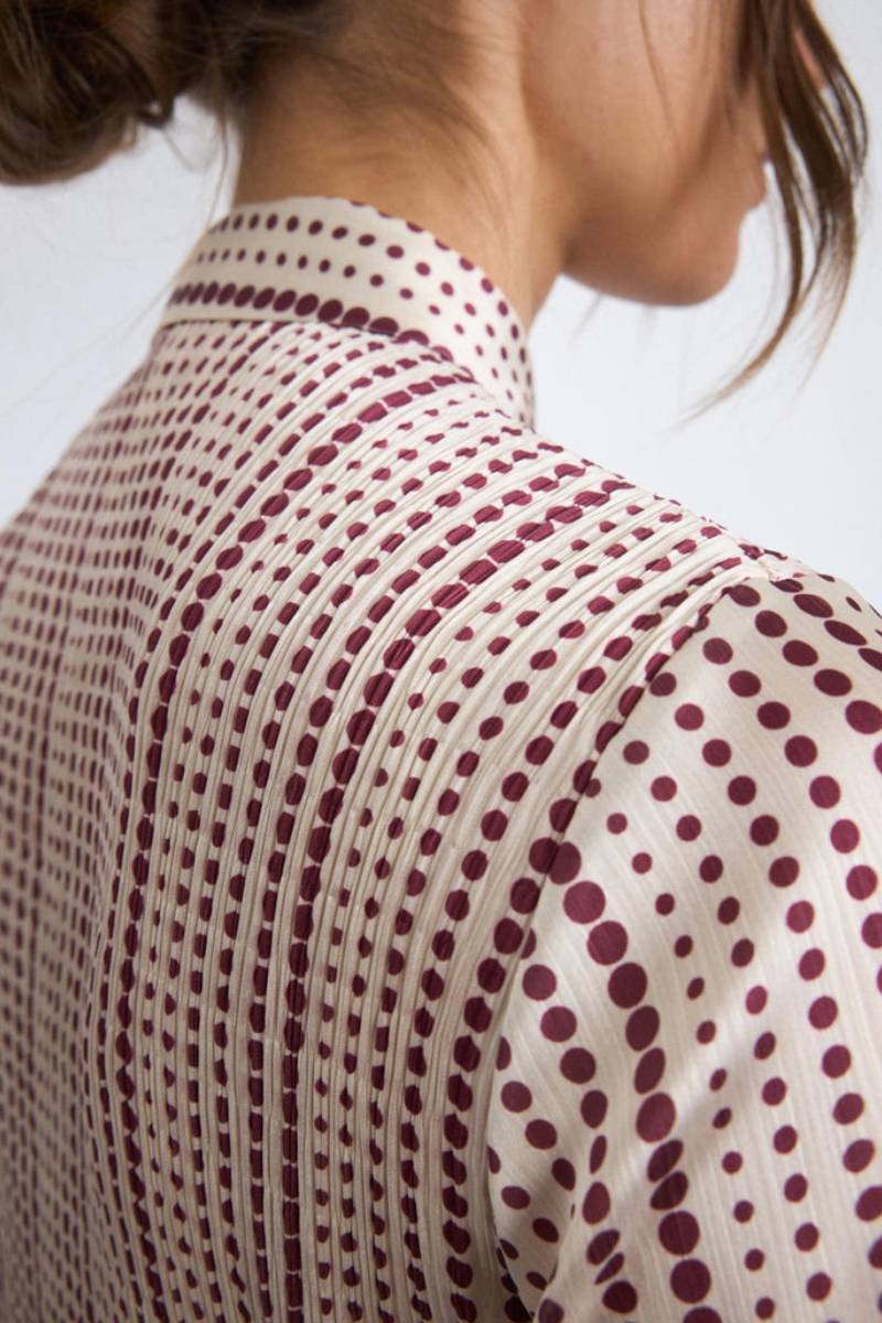 Αέρινη πλισέ μπλούζα με γεωμετρικό σχέδιο. V ντεκολτέ.