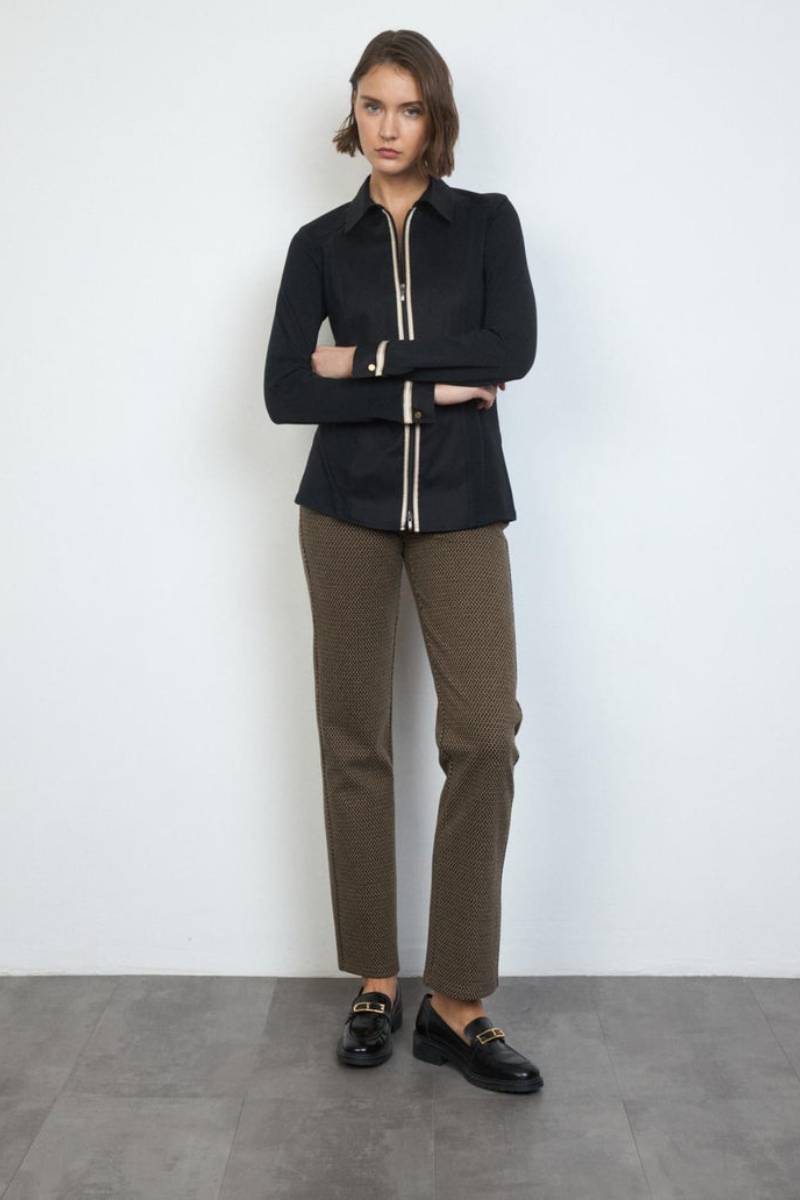 και προσαρμοστικότητα. Γιακάς πουκαμίσου. Κλείσιμο με φερμουάρ μπροστά με ριγέ ταινία σε αντίθεση.