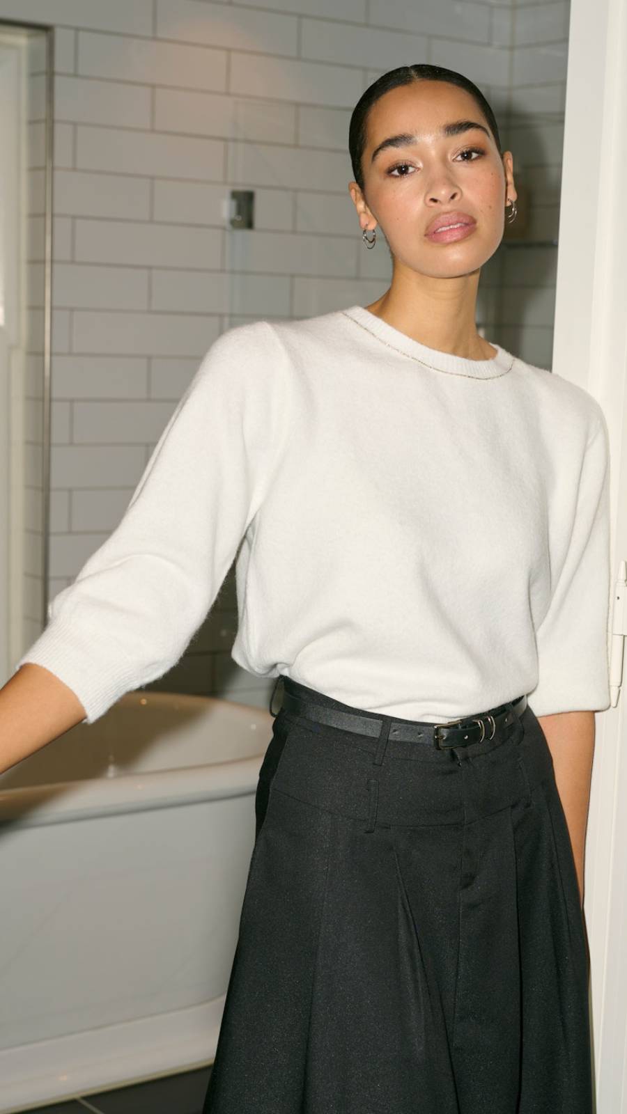 ΠΟΥΛΟΒΕΡ ΚΟΝΤΟ ΜΕ 3/4 MAΝΙΚΙΑ ΚΑΙ ΑΛΥΣΙΔΑ STRASS ΣΤΗ ΛΑΙΜΟΚΟΨΗ