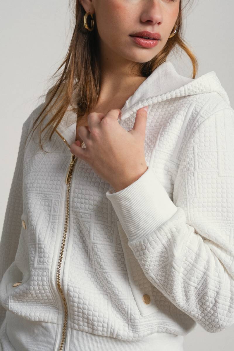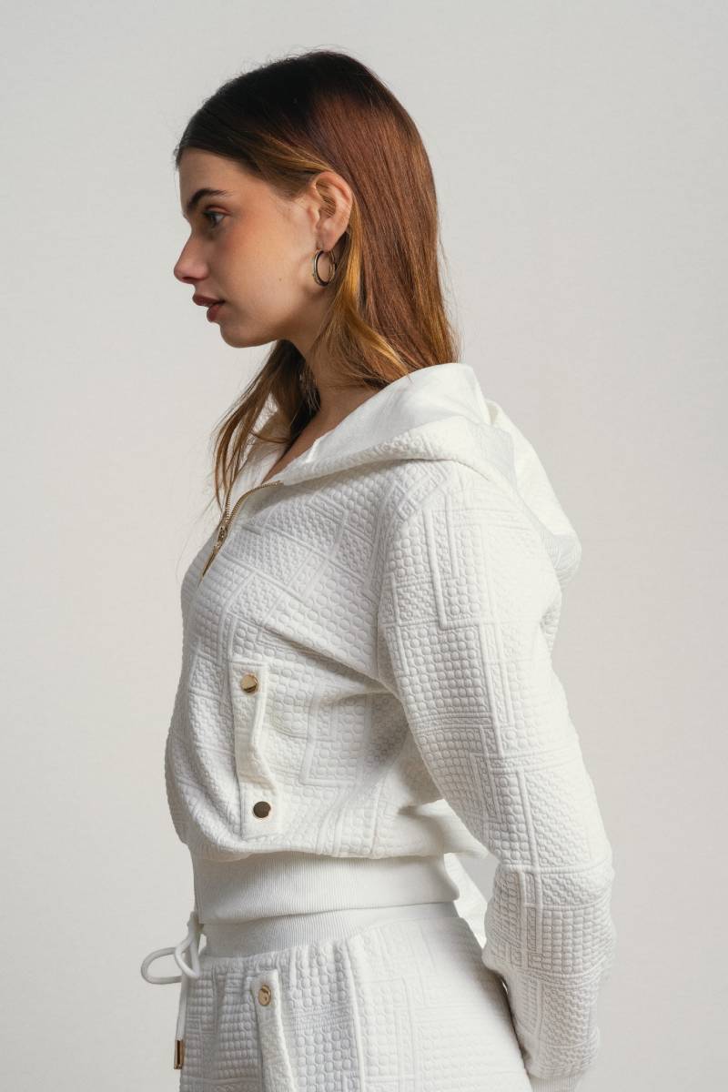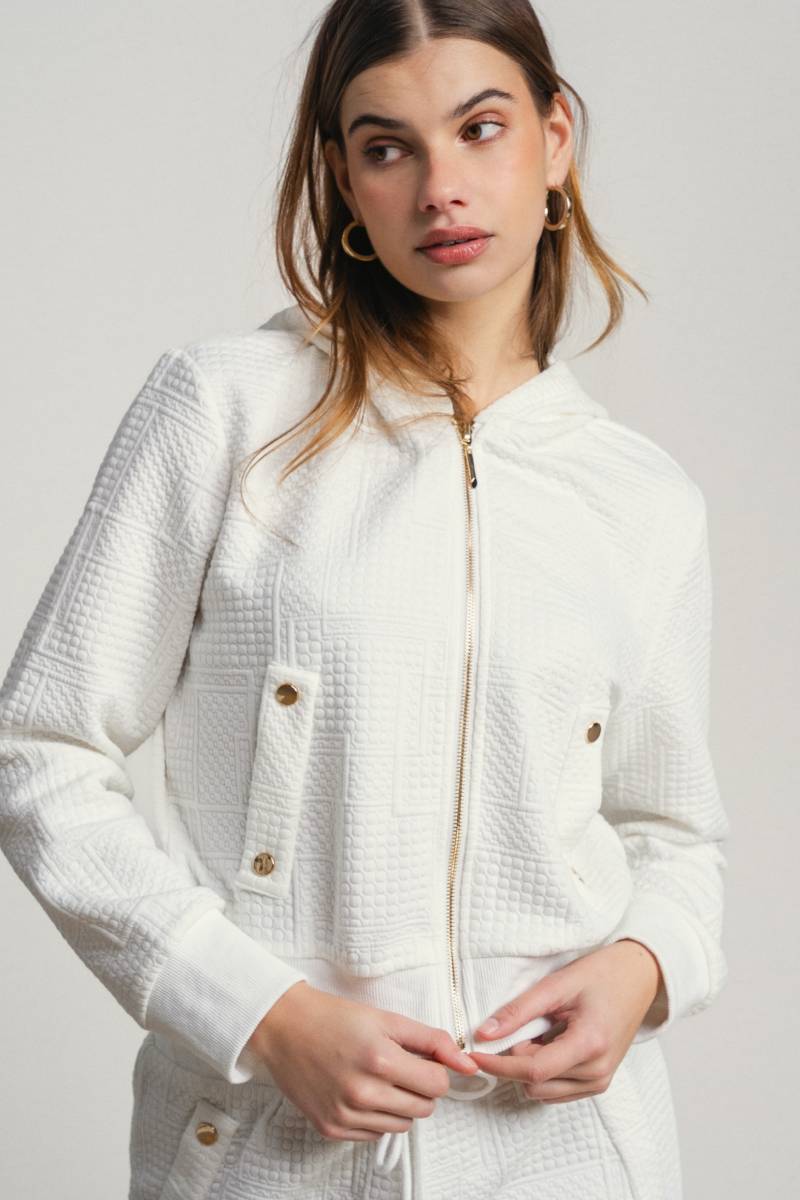 Περιγραφή Μπουφάν με ρυθμιζόμενη κουκούλα με κορδόνι. Μακριά μανίκια με ριμπ τελείωμα. Κλείσιμο με φερμουάρ. Μπροστινές τσέπες. Σύνθεση 96% Πολυεστέρας 4% Ελαστάνη